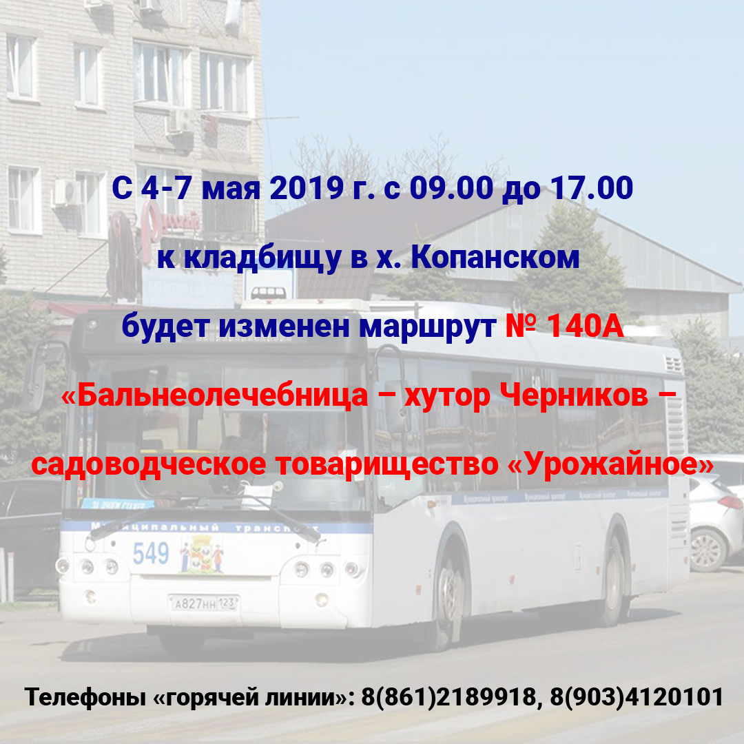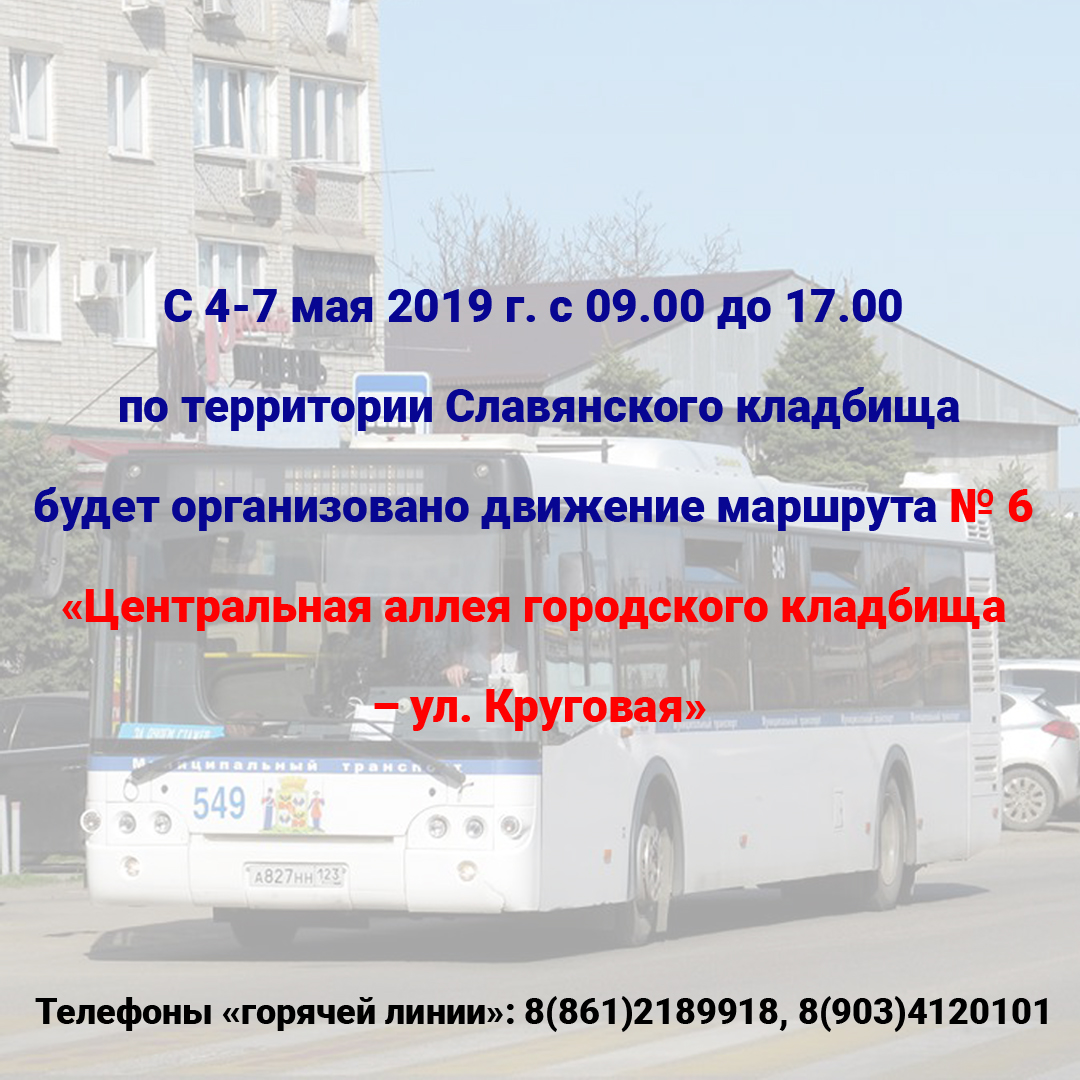 Для уточнения информации о работе общественного транспорта, расписании движения, в том числе специальных временных маршрутов пассажиры могут обращаться по телефонам «горячей линии» муниципального казённого учреждения «Центр мониторинга дорожного движения и транспорта»: 8(861)2189918, 8(903)4120101.