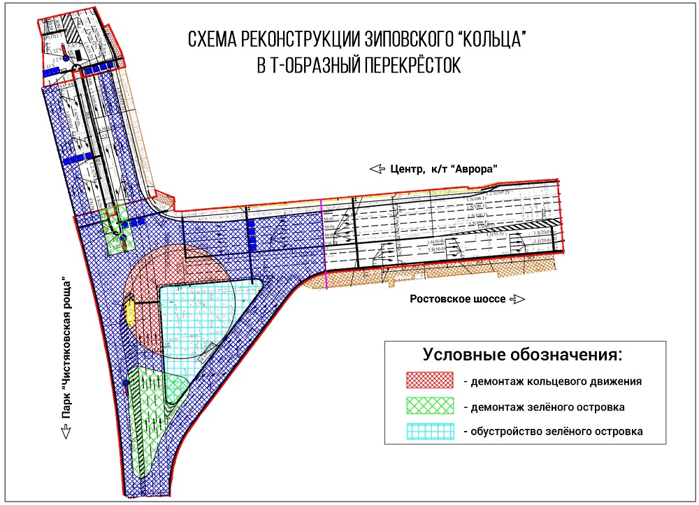 В ходе работ кольцевую развязку по ул. Офицерской и ул. Ростовское шоссе («Зиповское кольцо») изменят на Т-образный перекресток. 23 апреля глава Краснодара провел на месте выездное рабочее совещание, обсудил с подрядчиком и специалистами, как будут проходить работы.