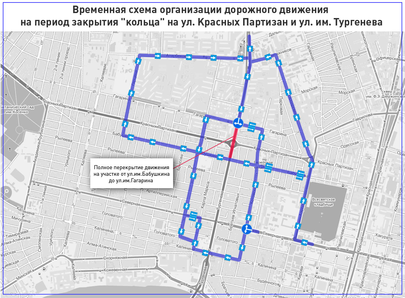 В Краснодаре на три дня закроют для движения кольцо по ул. Красных Партизан и ул. им. Тургенева